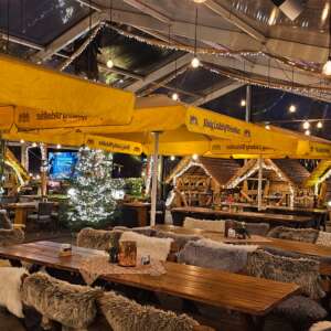 Weihnachtliches Ambiente im Weihnachtsdorf lässt sofort die passende Stimmung aufkommen.